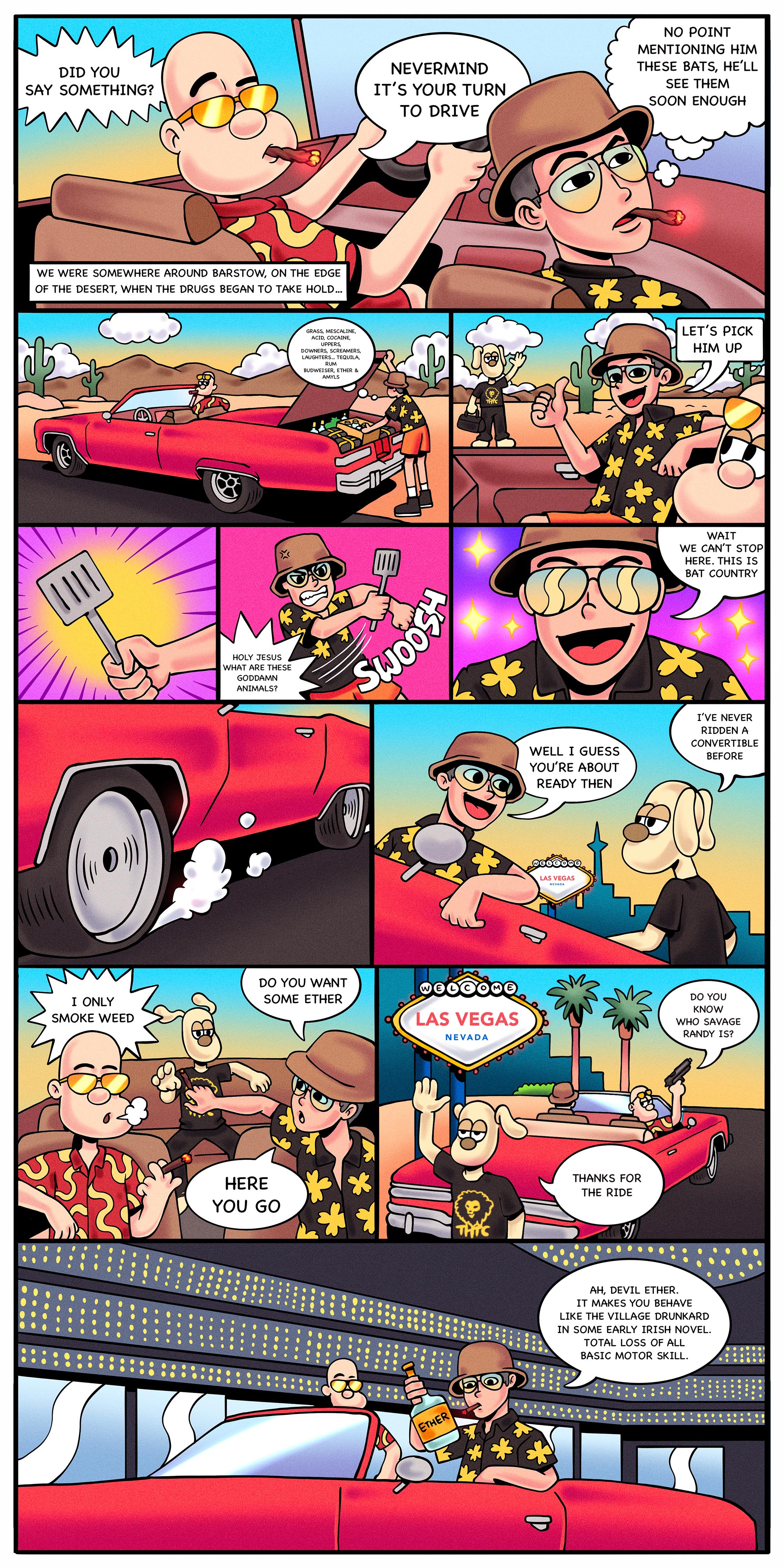 OL WALLACE TAKES A ROAD TRIP IN SEARCH OF THE AMERICAN DREAM TO THE BRIGHT LIGHTS OF LAS VEGAS WITH HIS LAWYER ON BOARD AND A BRIEFCASE FULL OF NARCOTICS, THEY CRUISE THROUGH THE BAT COUNTRY PICKING UP LIL GROMIT ALONG THE WAY BUT GET CAUGHT UP IN THE DEVIL ETHER… WHAT COULD GO WRONG?